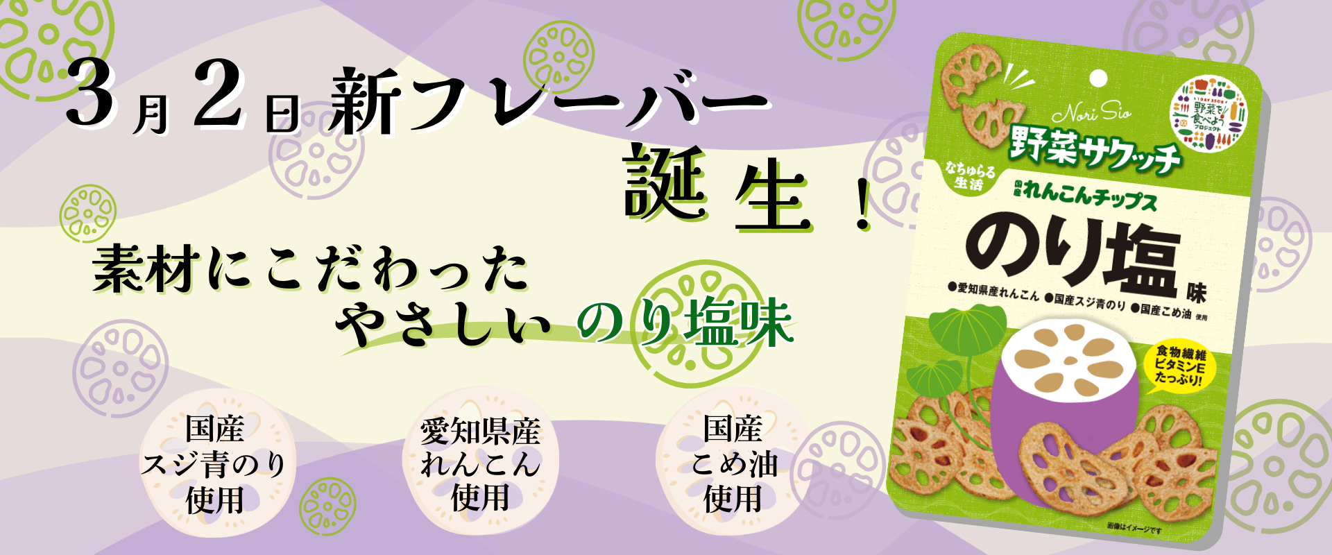 株式会社イー・有機生活(所在地:東京都千代田区、代表取締役:伊藤孝博)は、野菜サクッチの新シリーズ「野菜サクッチ国産れんこんチップスのり塩味」を2026年3月2日(月)に発売いたします。